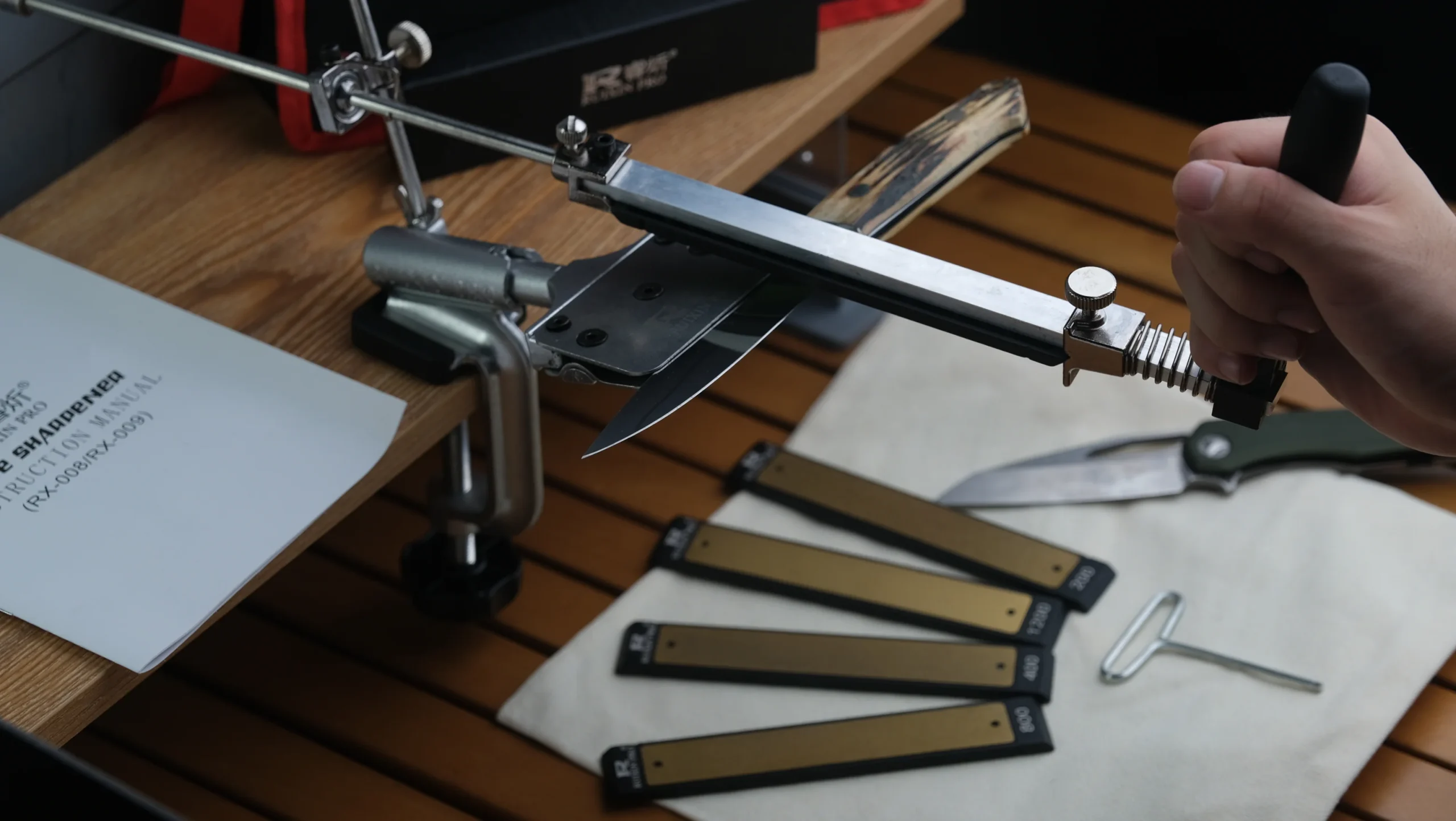 Использование Ruixin Pro RX‑008 не требует специальных навыков. Достаточно закрепить нож, выбрать угол, установить нужный камень и плавно проводить направляющую вдоль лезвия. Благодаря фиксированному углу и стабильной конструкции даже новичок может получить ровную, аккуратную и очень острую кромку. При этом точилка позволяет избежать типичных ошибок ручной заточки — неправильного угла, неравномерного давления и «заваливания» кромки.